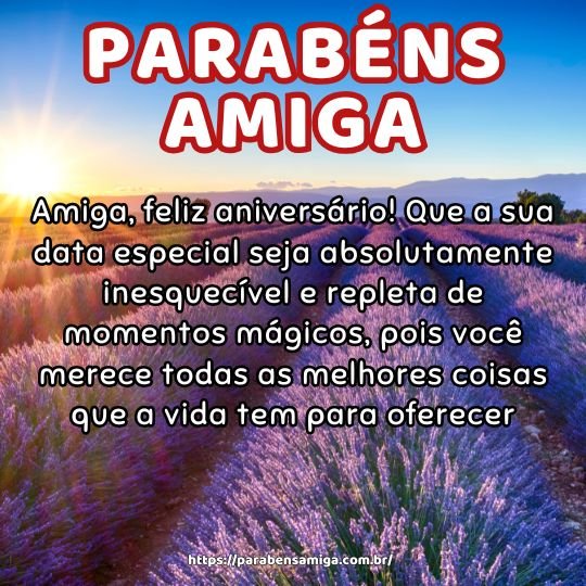 Parabéns, amiga! Celebre este dia especial com muita alegria e entusiasmo no coração, pois cada instante desta jornada é único e merece ser vivido intensamente.