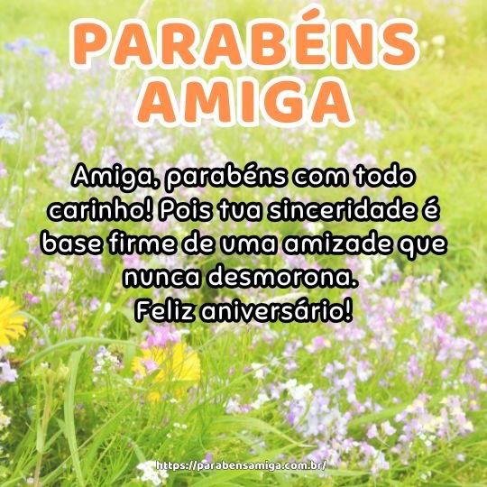 Amiga linda, parabéns! Pois tua sinceridade tornou nossa amizade uma das coisas mais preciosas da minha vida. Feliz aniversário!